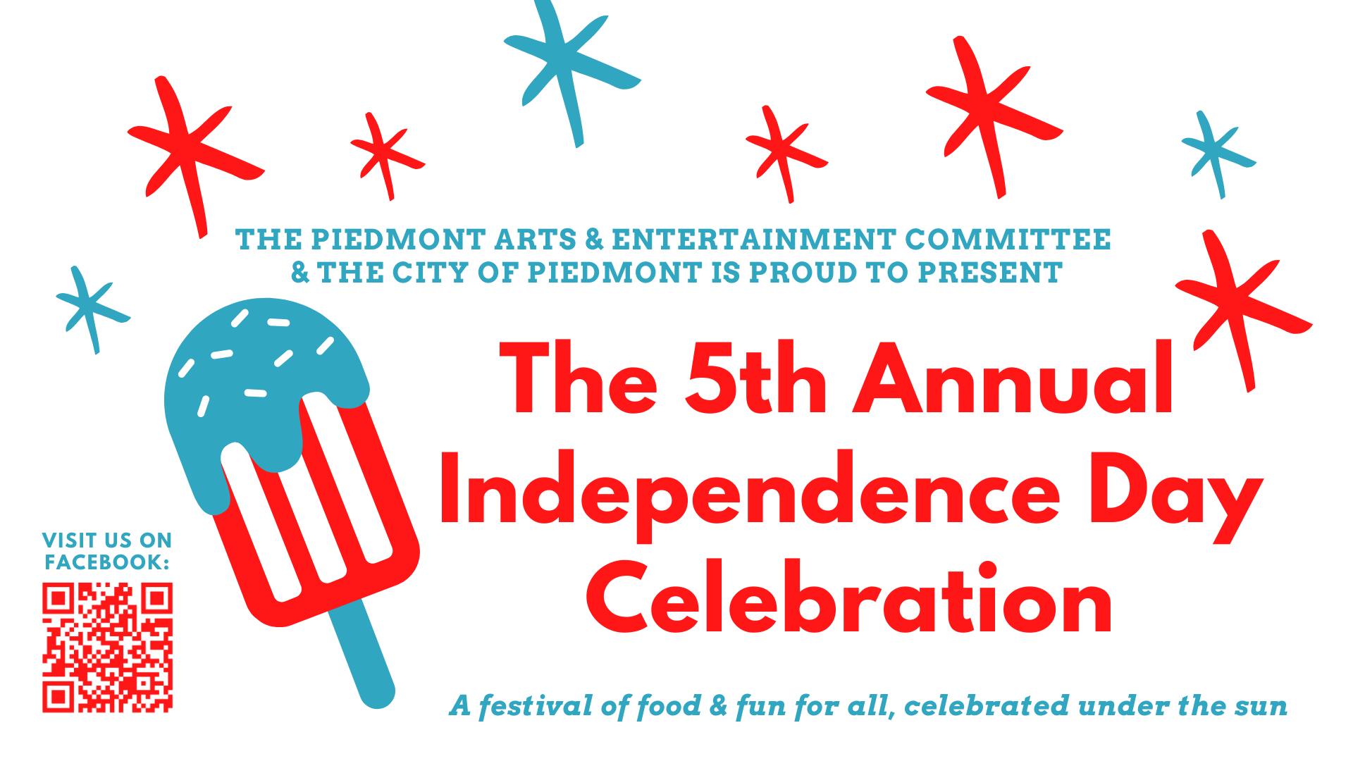 Join us on Friday, July 4th for a festival of food, fun, and fireworks at the Piedmont Sports Complex from 5 PM to 9 PM.