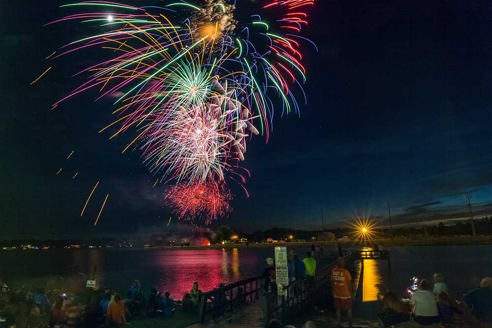 The fireworks will be visible from the Sports Complex as well as Lakeside Park. As always, the spectacle can also be seen by boat from multiple vantage points throughout the lake.